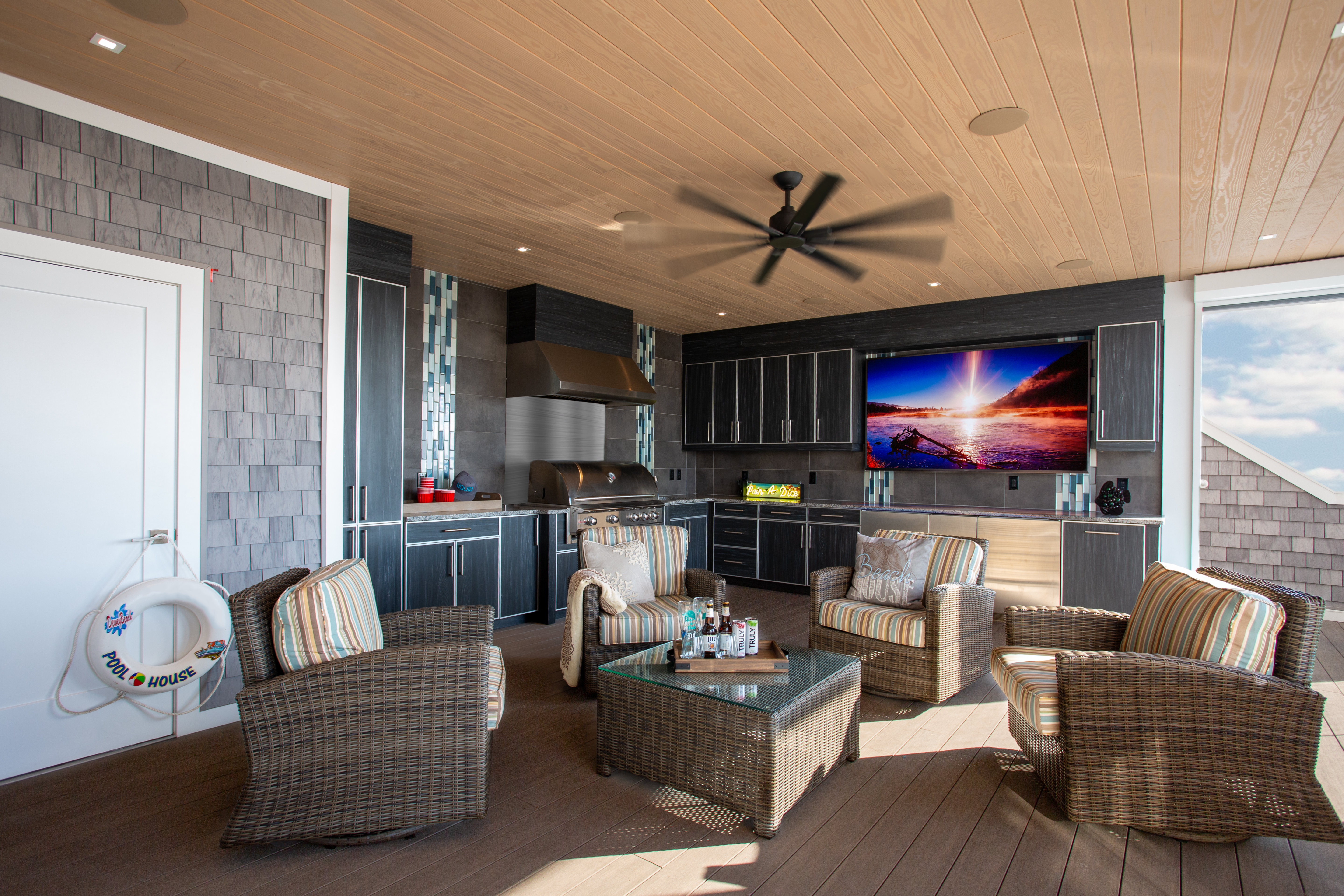 Bring your indoor entertainment outside with anti-glare outdoor TVs and high-fidelity outdoor sound.